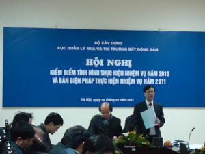 Tại Hội nghị, đồng chí Nguyễn Mạnh Hà, Cục trưởng Cục Quản lý nhà và Thị trường bất động sản đã trình bày Báo cáo kiểm điểm thực hiện nhiệm vụ năm 2010 và chương trình công tác năm 2011 của Cục Quản lý nhà và thị trường bất động sản. Theo Báo cáo tổng kết công tác, trong năm 2010 dưới sự chỉ đạo, điều hành quyết liệt và có hiệu quả của Lãnh đạo Bộ Xây dựng mà trực tiếp là đồng chí Thứ trưởng Nguyễn Trần Nam, Cục Quản lý nhà và Thị trường bất động sản đã hoàn thành cơ bản các nhiệm vụ đề ra cho năm 2010: