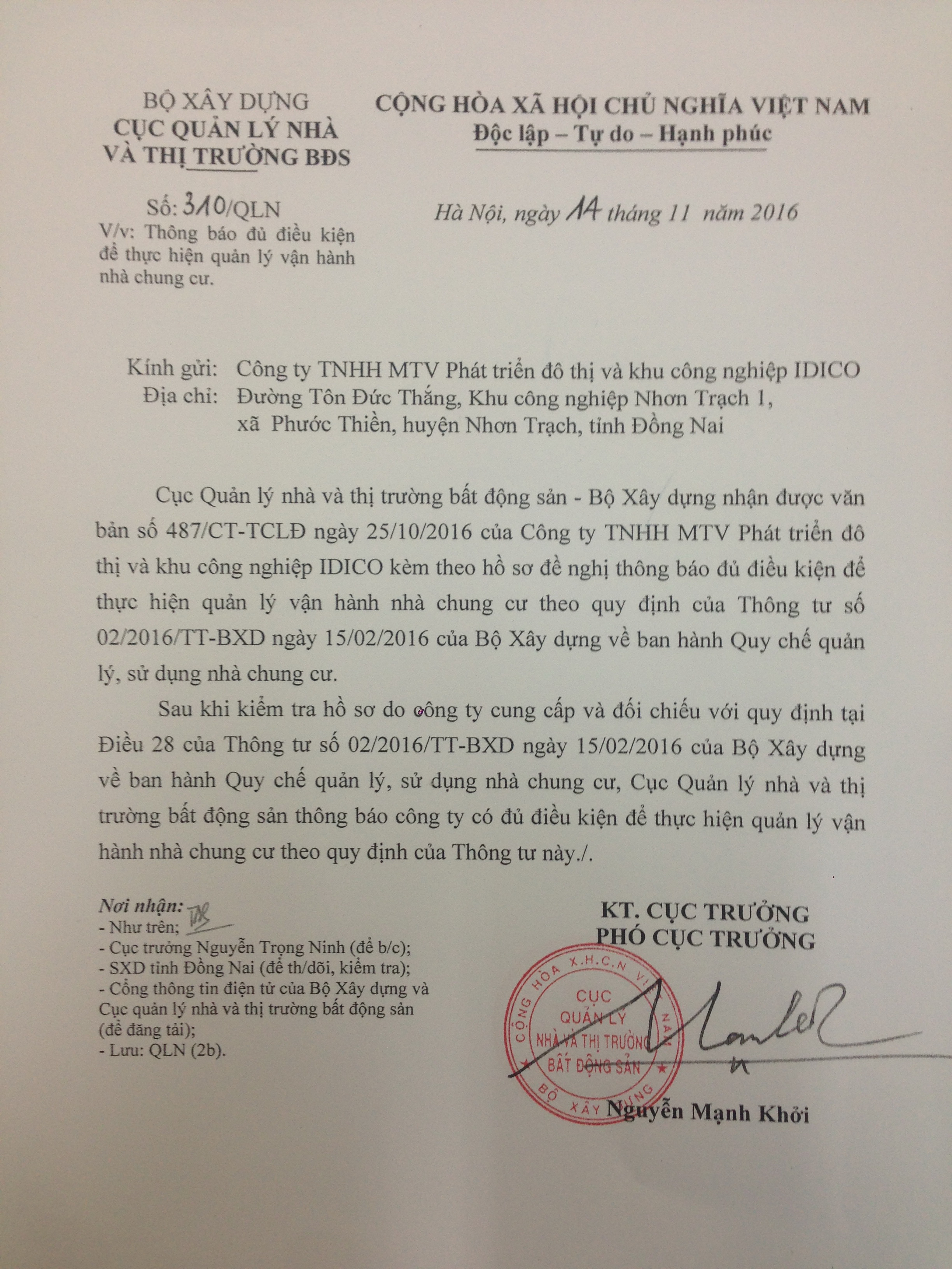 1 | Công ty TNHH MTV Phát triển đô thị và khu công nghiệp Idico | Đường Tôn Đức Thắng, khu CN Nhơn Trạch 1, xã Phước Thiền, huyện Nhơn Trạch, Đồng Nai | Tải về |